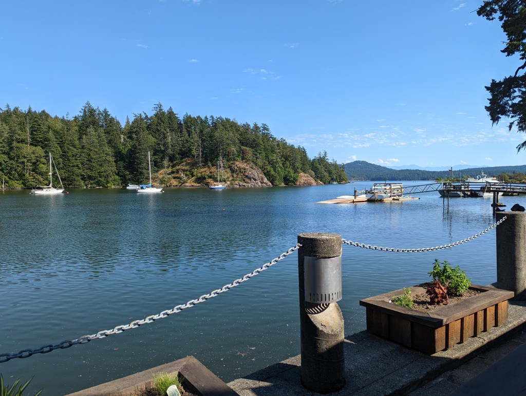 Fabulous west coast cuisine in a stunning location. The hills at the back tend to protect the patio from the prevailing wind. We often saw harbour seals swimming nearby and lounging on the kayak pier.