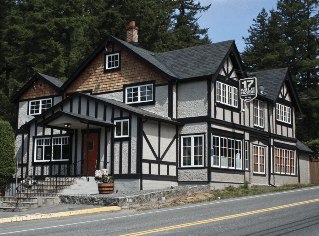 If in the area, ya HAVE to go to the 17 mile pub (named for the distance it is from Victoria). Fabulous food in a classic old English pub setting. There is a patio out back.