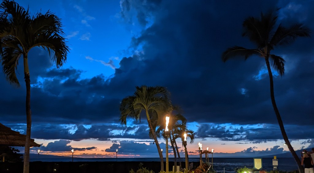 It was my turn to cook last night, so we ate at the restaurant here. The short walk was kinda purdy.