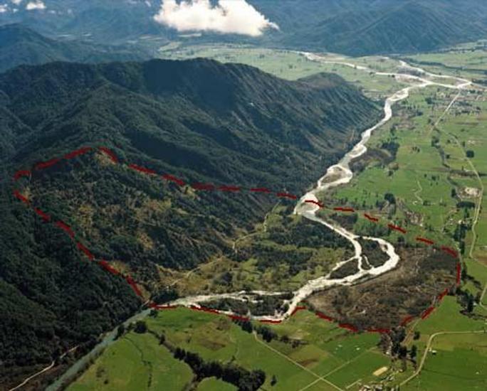The Buller Gorge is also home to the White Creek fault scarp. Created by the massive June 17th, 1929 Murchison/Buller earthquake (magnitude 7.8) it cut across a road here, lifting one side 4.5 metres! It triggered approximately 10000 landslides.