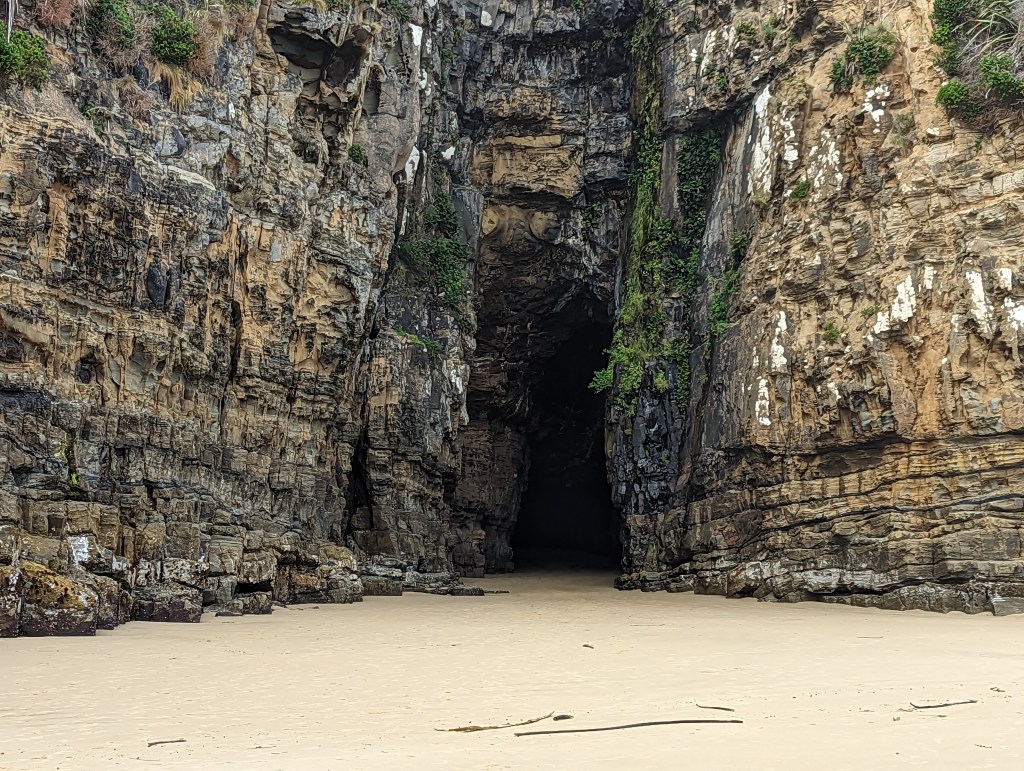 Final stop of the day (yes, it was a real Pippin day): yet more cathedral caves! It was a kilometre walk down, down, down to the beach and then 300 metres to the first of the caves.