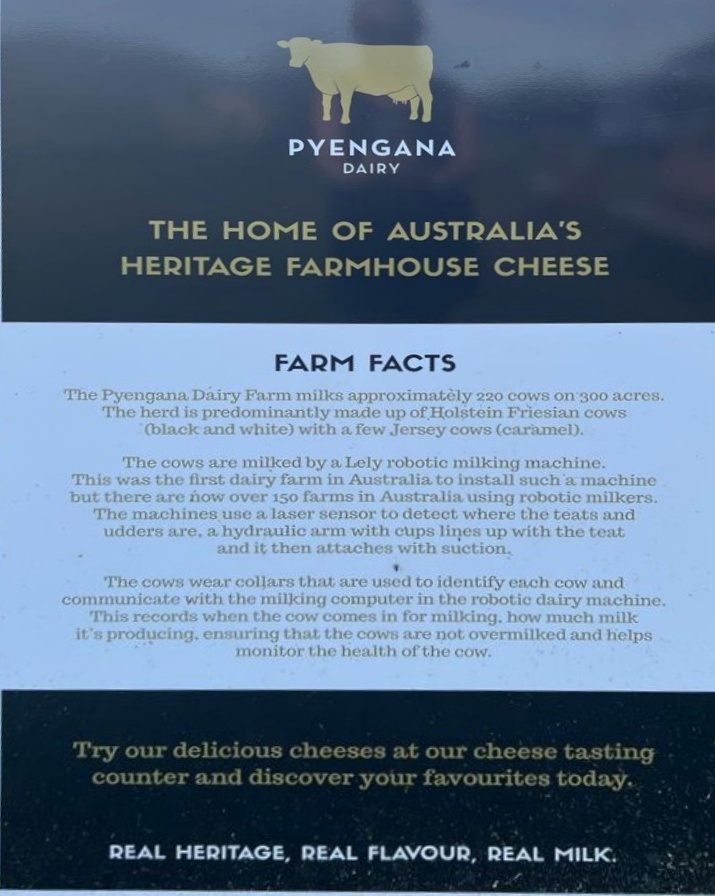 On our way to Launceston, we stopped for lunch at Pyengana Dairy Company for lunch. We always wanted to see how a modern dairy operation works! Unfortunately we forgot to get photos of the farm, so these two are pulled from the web: